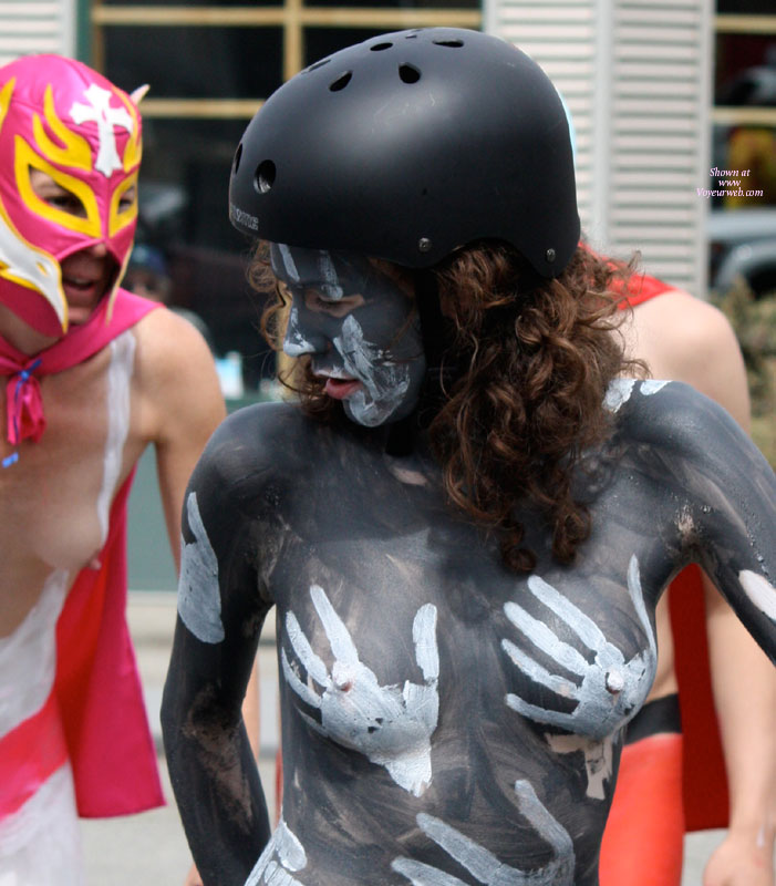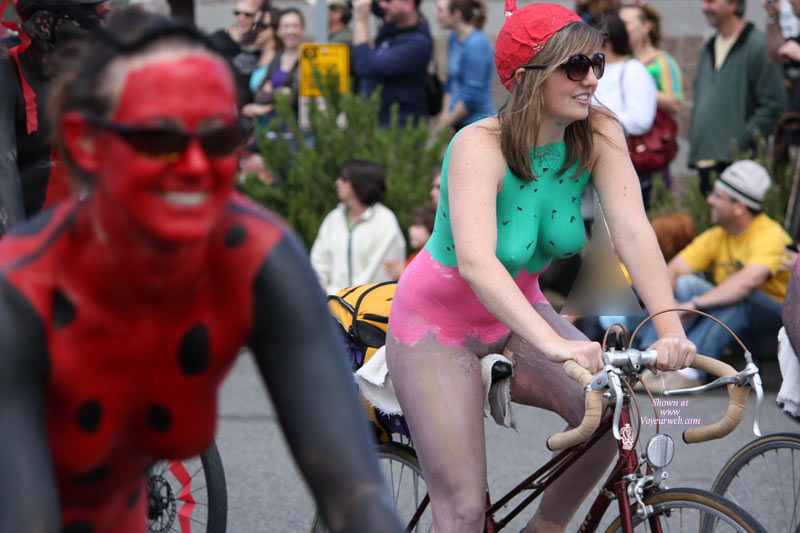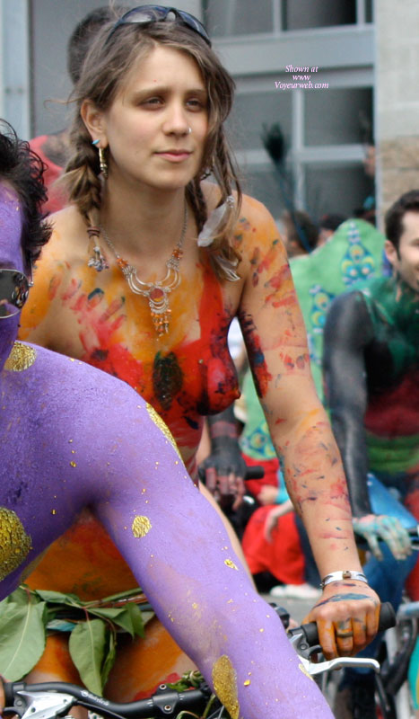 For those who don't know the story, every year the Fremont Solstice Parade in Seattle starts with the famous naked (bodypaint) bike ride. Here's the first installment from 2009.